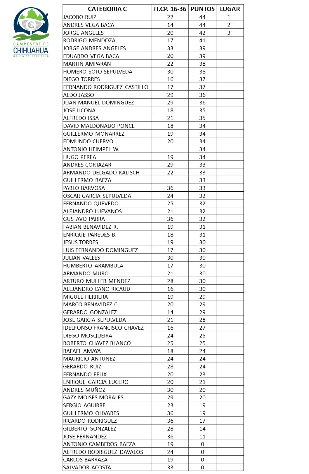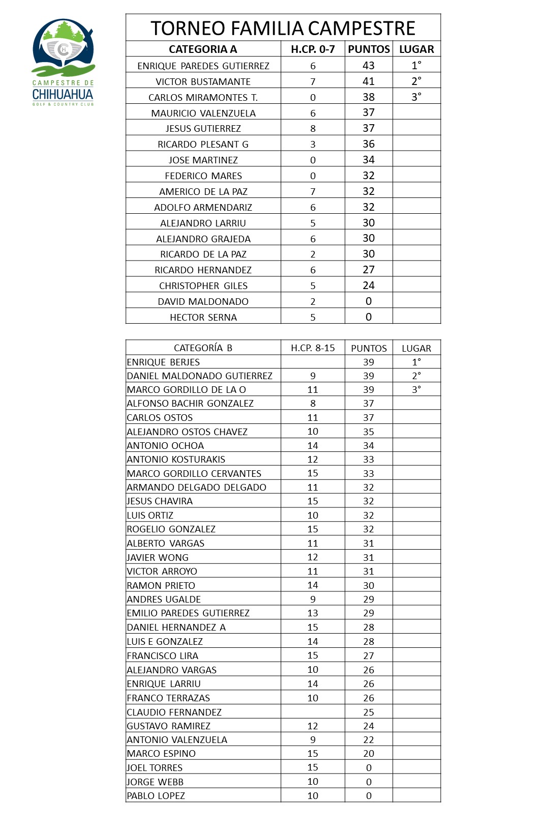 Se llevo a cabo la primera etapa del torneo us kids el pasado 27 de junio con una participacion de 49 golfistas, 26 fueron del club campestre. de las 8 categorias que jugaron 9 hoyos, obtubimos 5 primeros lugares, 6 segundos, 2 terceros y 4to lugar. aunque tuvimos que interrumpir el juego por la lluvia fue un torne que por primera vez en esta gira se juega en nuestro estado, resultando muy interesante, ya que suma puntos para el world y teen championchips.